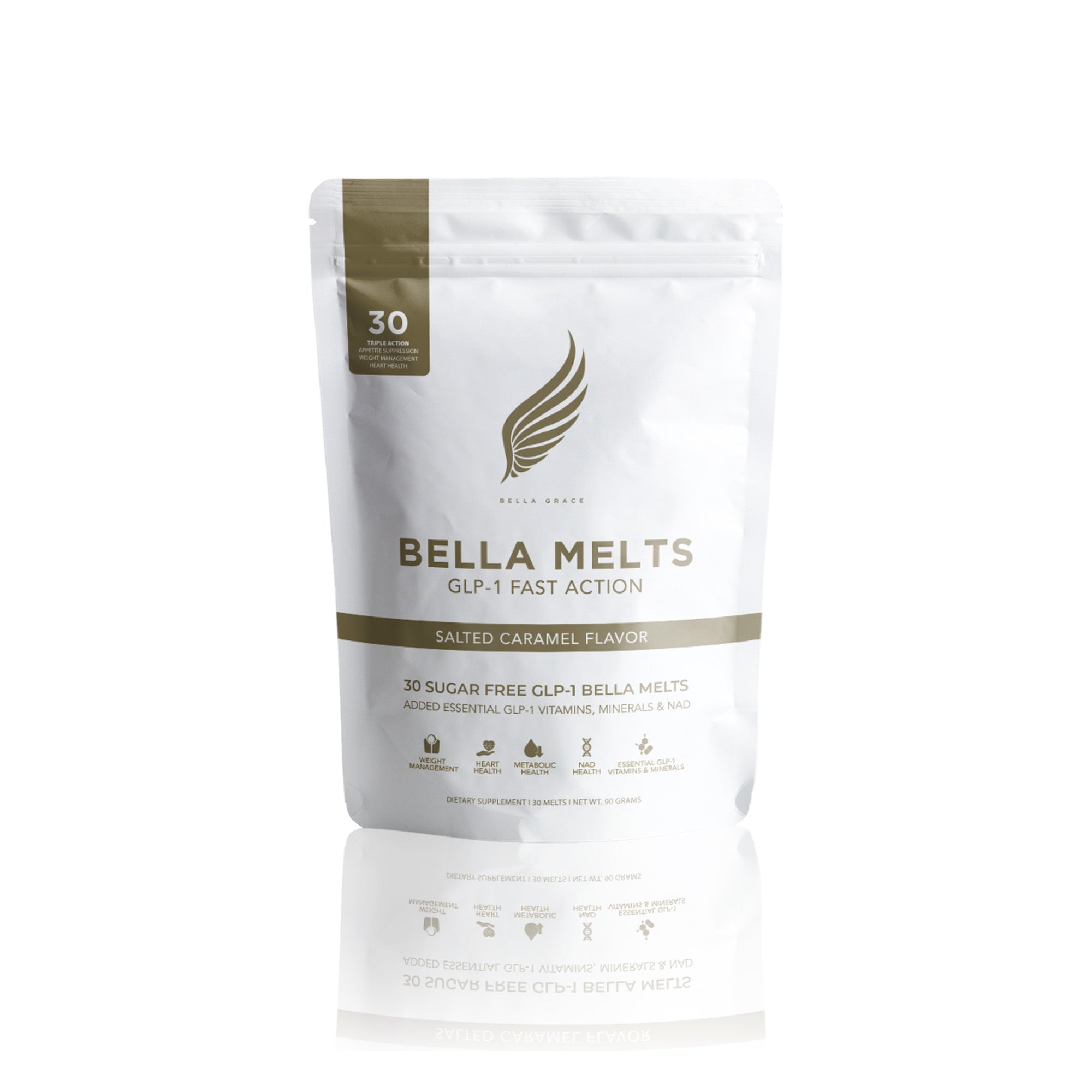 Bella Melts to pyszny karmelowy przysmak zawierający silnie działające składniki roślinne i niezbędne składniki odżywcze. Każda bezcukrowa tabletka działa naturalnie na organizm, aktywując GLP-1, pomagając szybciej osiągnąć uczucie sytości, pozostać zadowolonym, złagodzić apetyt i spalić więcej kalorii.